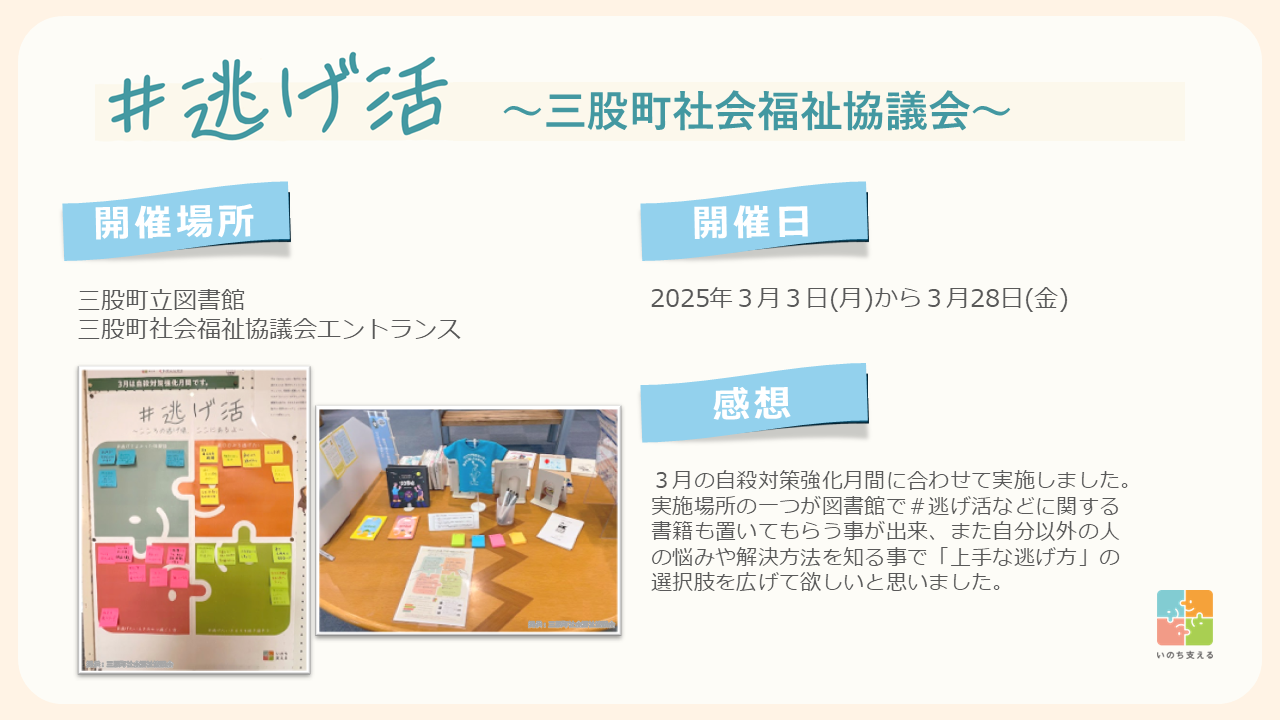 #逃げ活 〜こころの逃げ場、ここにあるよ〜 開催事例集