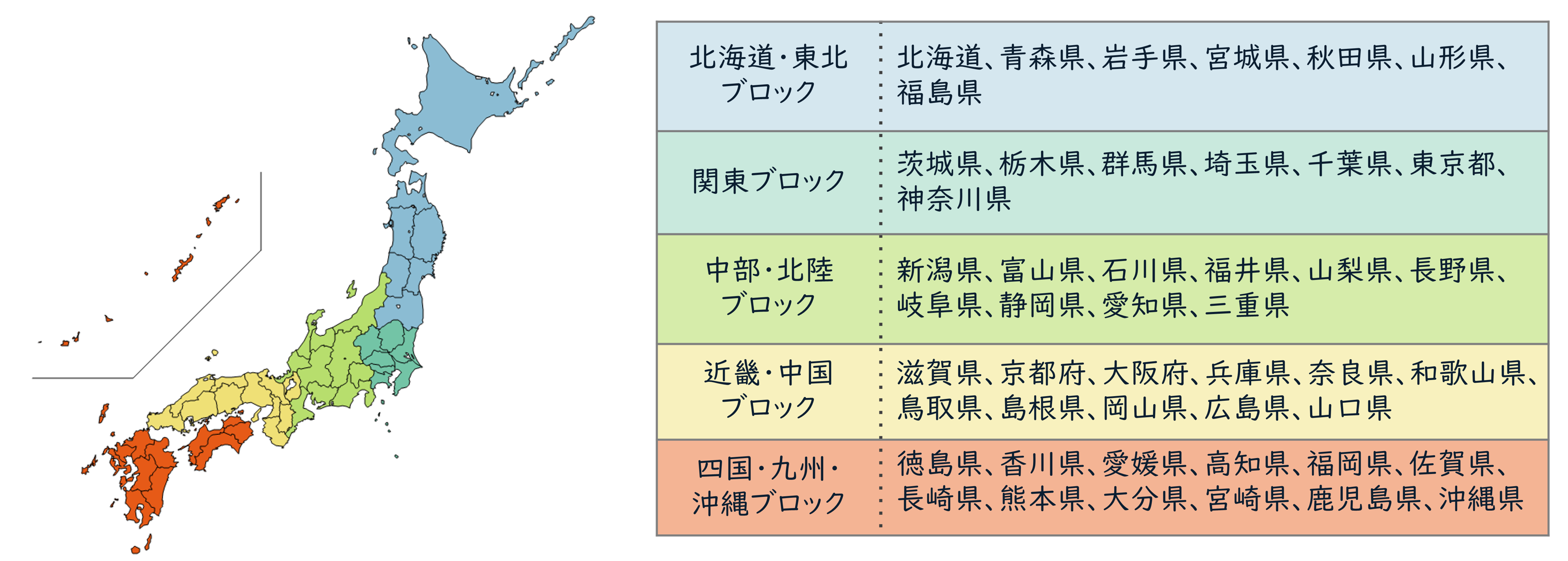 ※「北海道、東北」「関東」「中部、北陸」「近畿、中国」「四国、九州・沖縄」の5ブロック